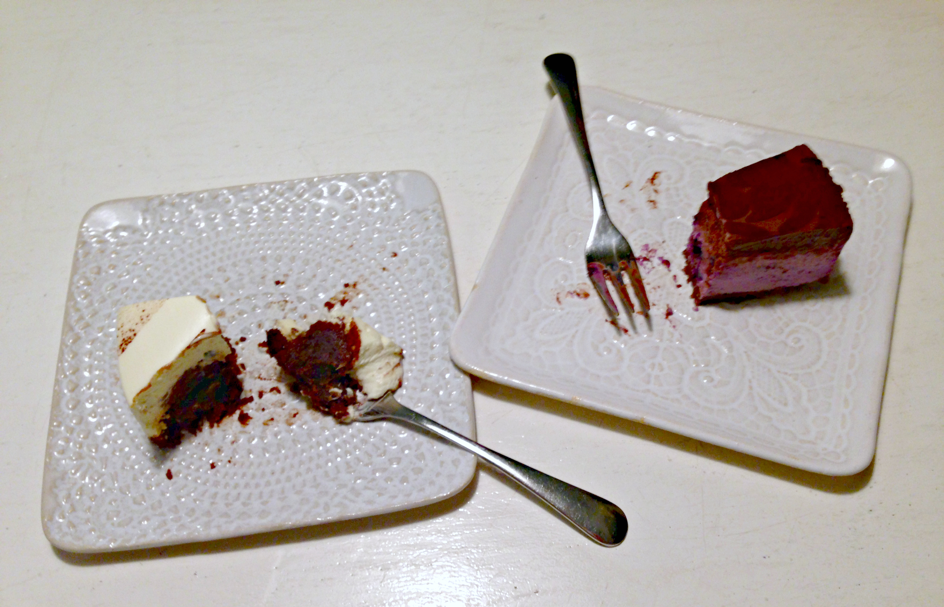 Put the cream and the sugar in a saucepan and start cooking at medium heat. On my present induction cooker, I tend to have the temperature at 3.5-4 (out of 9). Keep cooking, stirring it quite often, so it won’t stick to the bottom. Make sure it’s bubbling a little all the time, but not too much! Just small bubbles like in the picture above. For me, the cooking time tends to be a minimum of 30 minutes, sometimes even more. Towards the end, the mixture starts thickening up and darkens in colour. A test that all the recipes advise is to put a drop of the mixture into a glass of cold water. If it dissolves at all into the water, it’s not ready yet. It’s supposed to form a nice, solid drop on the bottom of the glass. I usually always keep testing one drop after another, and never really know if it’s right or not. Nowadays, having baked this cake so many times, I just use my intuition (and still sometimes get it wrong!).