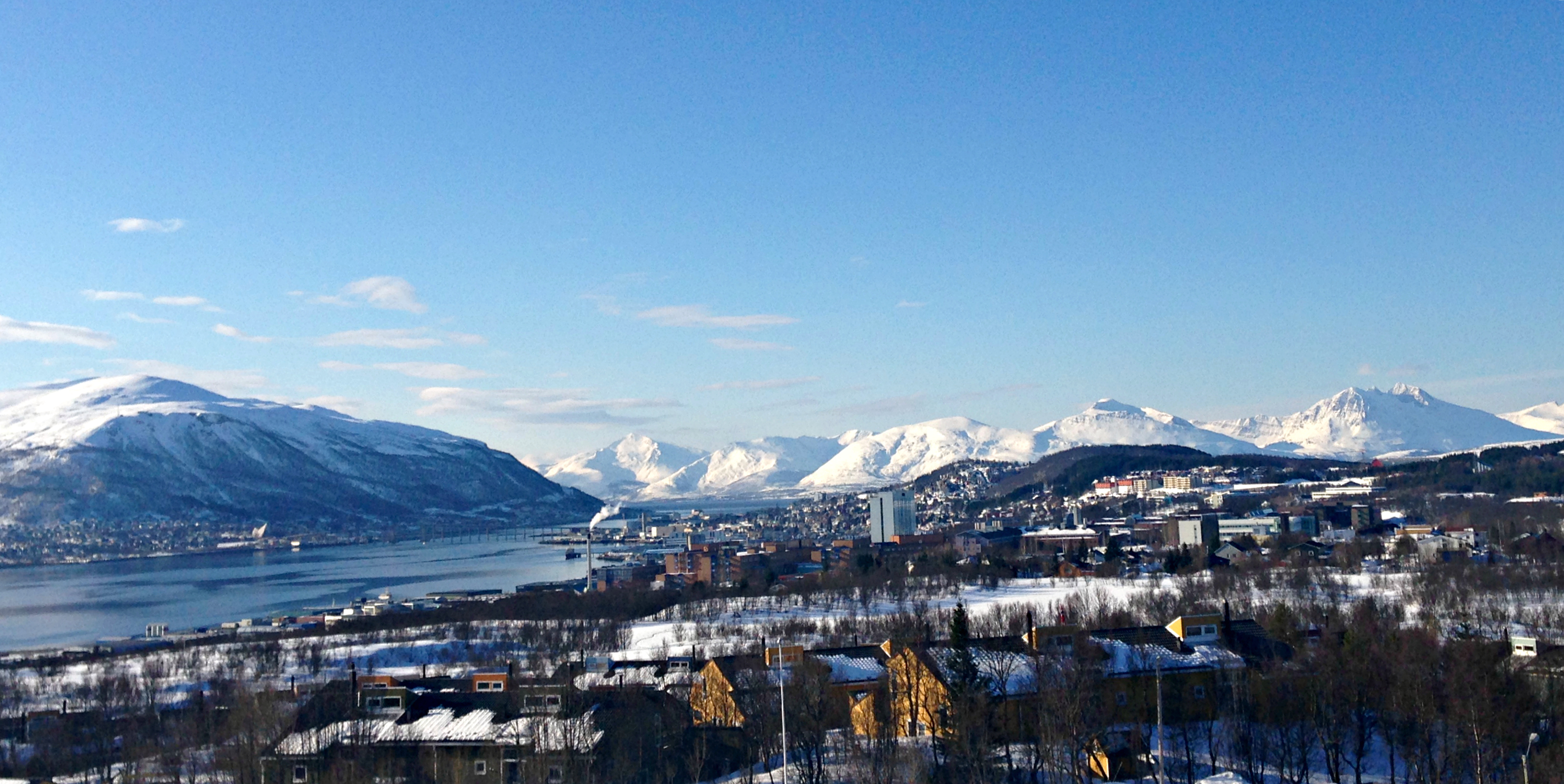 Finally, to finish with, can’t resist posting yet another photo of Tromsø. This time from the other side of the fjord, actually from our friend’s balcony. Blue skies on one of the mornings, lighting the snow-covered mountains.